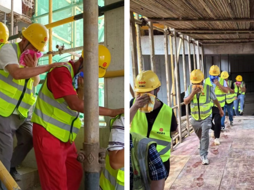 活動(dòng)包含安全通道應(yīng)急疏散演練、“安全宣傳咨詢?nèi)铡?、安全隱患大排查等內(nèi)容。演練以項(xiàng)目6#樓4層焊接作業(yè)時(shí),焊點(diǎn)處火星迸濺導(dǎo)致樓內(nèi)堆放的易燃建筑材料起火為模擬場(chǎng)景,各應(yīng)急演練小組反應(yīng)迅速、密切配合、有序高效地完成了疏散逃生、滅火救援等內(nèi)容。本次演練為應(yīng)對(duì)施工項(xiàng)目現(xiàn)場(chǎng)真實(shí)火災(zāi)事故提供了有力保障。